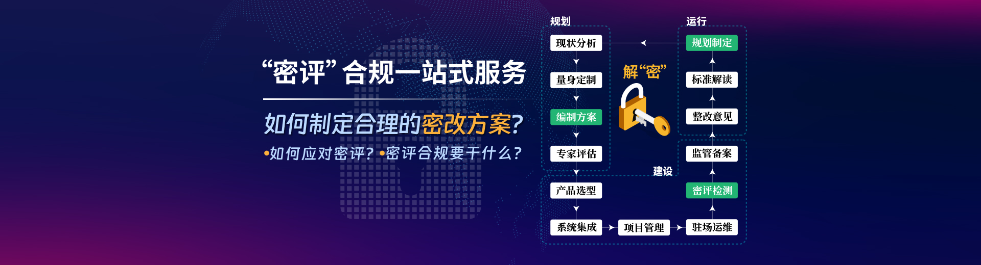 為客戶(hù)提供個(gè)性化、專(zhuān)業(yè)性的,符合相關(guān)規(guī)定要求的,全流程——密碼技術(shù)解決方案。